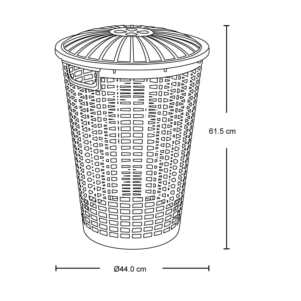 Cesta Redonda con Manijas tejida para ropa capacidad total de 51L. Con manijas que facilitan su uso. Tapa con tope de seguridad que permite una abertura parcial o total. Es apilable, puede ubicar una