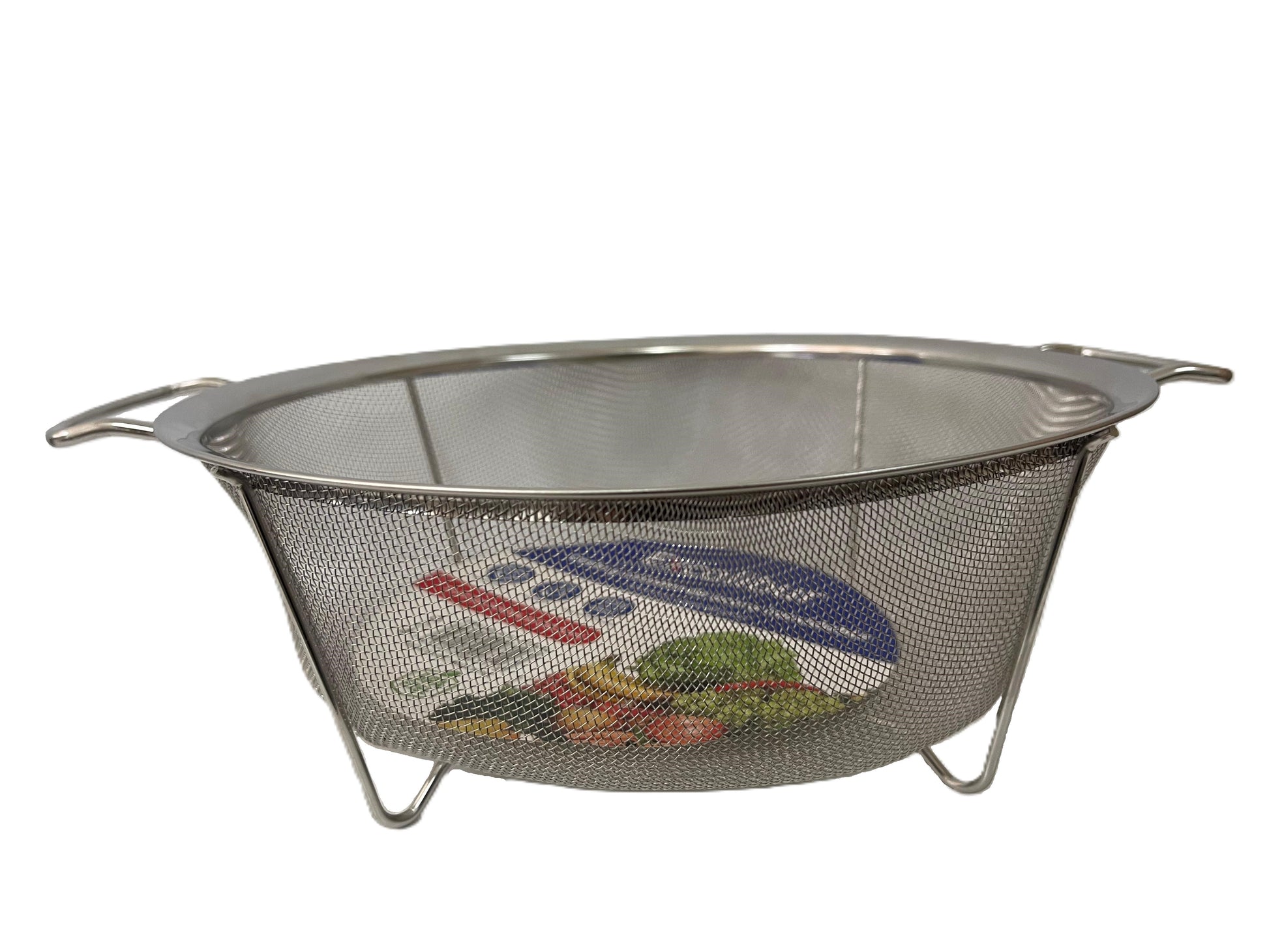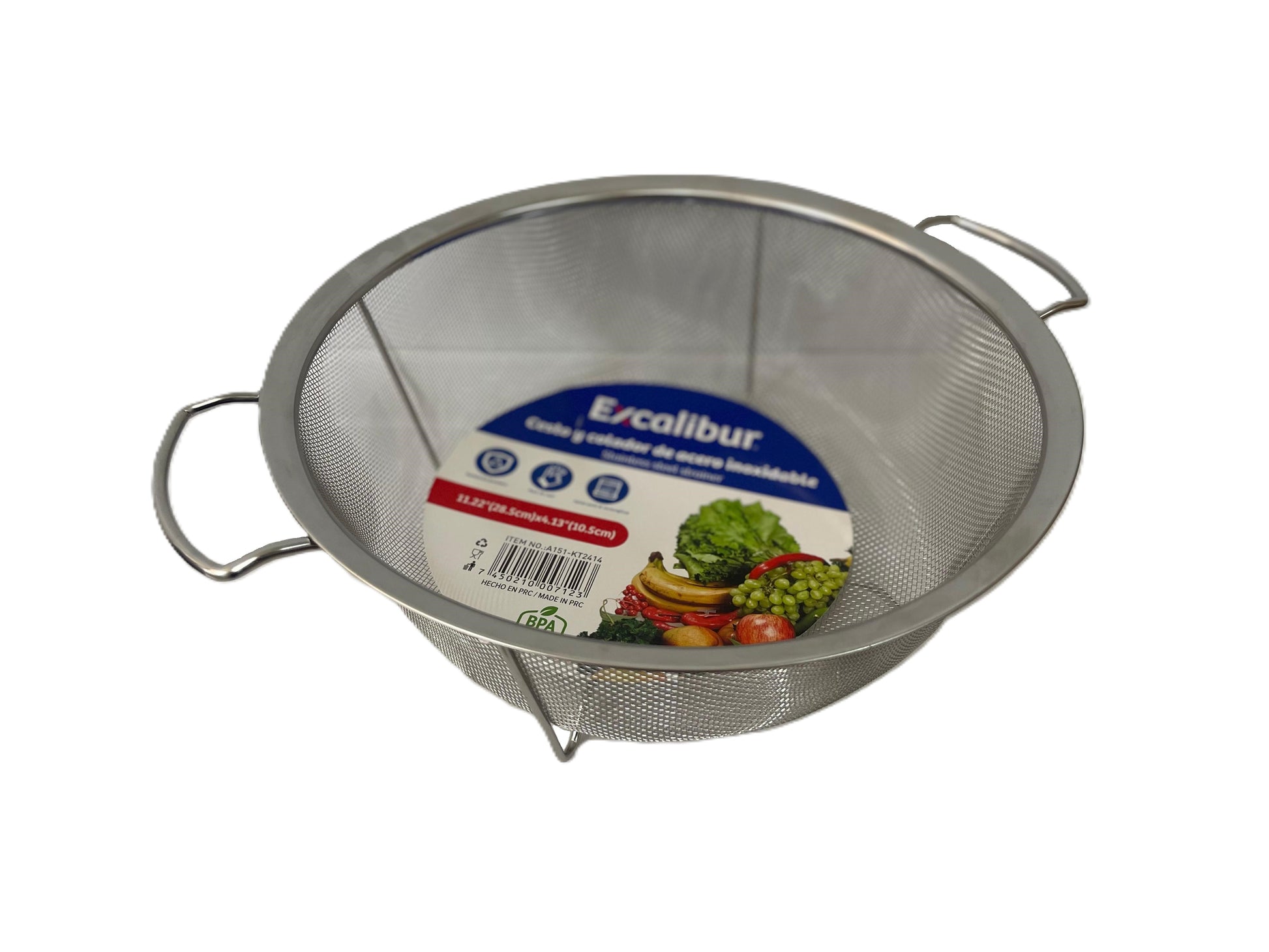 El colador Excalibur de 28 cm con asas es un utensilio de cocina fabricado en acero inoxidable de alta resistencia, diseñado para ofrecer durabilidad y practicidad en el uso diario.