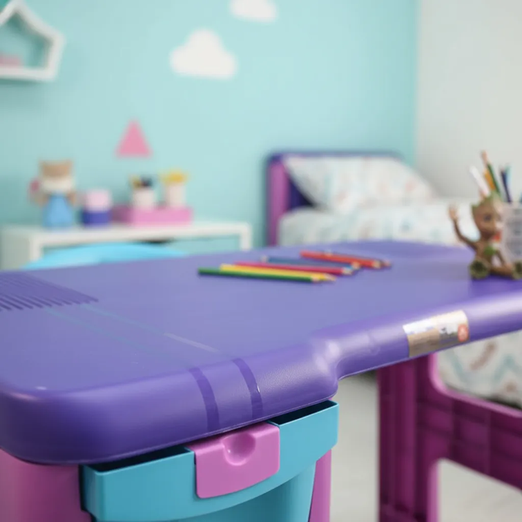 Este escritorio junior de Colplast es la combinación perfecta de funcionalidad y estilo, ofreciendo un espacio atractivo y cómodo que estimula el aprendizaje y la imaginación de los más pequeños.