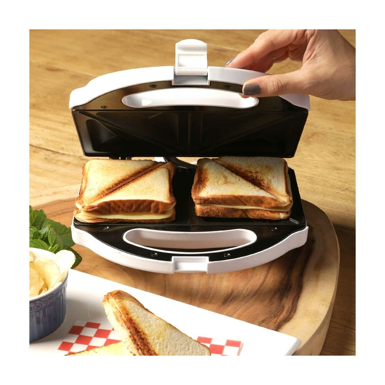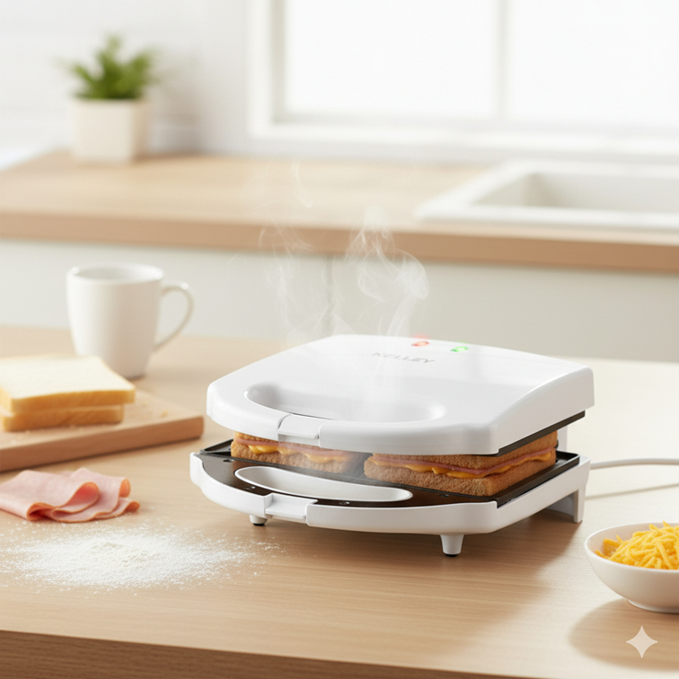 ¡Prepara los más deliciosos sanduches con la sanduchera KALLEY K-SM101 blanca, perfecta para sorprender a tu familia! Cuenta con capacidad para dos sanduches, con placas antiadherentes que evitan que la comida se pegue a la superficie, te recomendamos usar solo espátulas en madera o nylon para evitar daños en el antiadherente. Tiene un sistema de cierre con seguro desprendible para asegurar el producto mientras está en funcionamiento, además tiene compartimiento para el cable para que lo guardes con facilidad. ¡No te quedes sin la tuya!