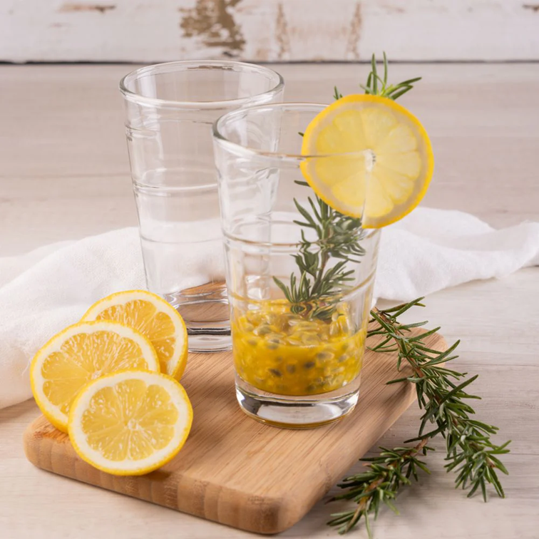 Buena capacidad (385 ml) lo que lo hace versátil para bebidas largas, jugos, refrescos, etc.