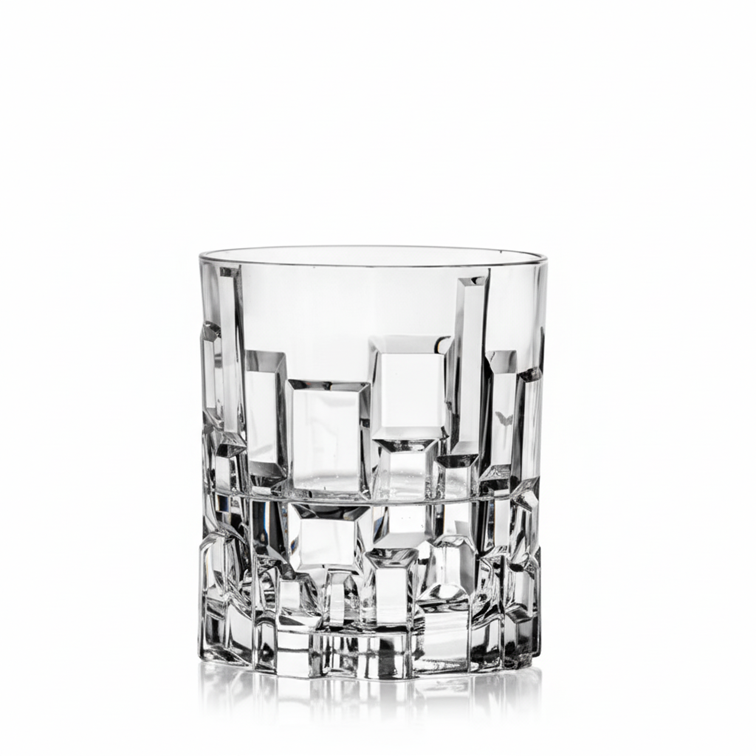 - Diseño: Vaso corto, estilo “vaso de whisky corto con la silueta elegante y tallada de la línea Etna.