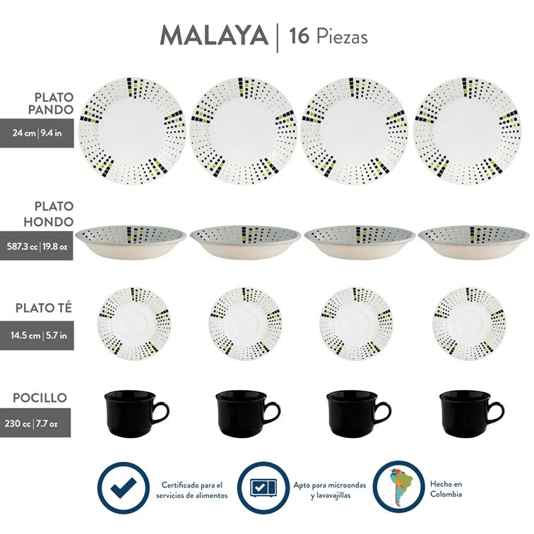 Vajilla Corona Malaya 4 Puestos 16 Piezas VL1184040116