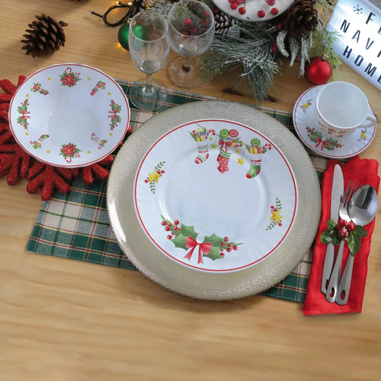 Vajilla de Vitrocerámica Aguinaldo 4 Puestos 16 Piezas HEVV-1601